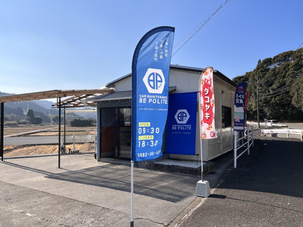 元々は大阪の堺市で整備工場を営まれていたオーナーですが、お父様が定年後に故郷である日向に戻り、3年前にご夫婦も日向に移住してきたそうです。その後はご夫婦で整備工場に勤められていたそうですが、独立し今年2022年、1月11日「BE POLITE」を開業しました。、