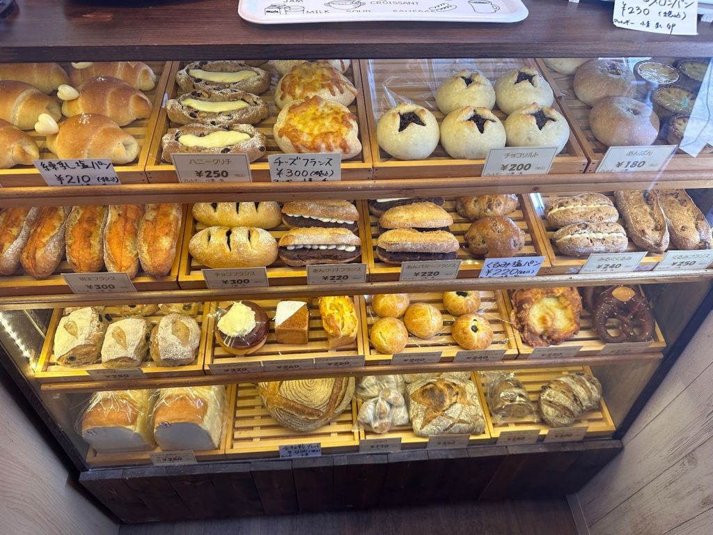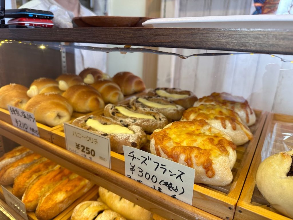 「OPEN」の札がぶら下がった可愛らしい扉を開くと、そこにはパンがズラリと並んだショーケースが。