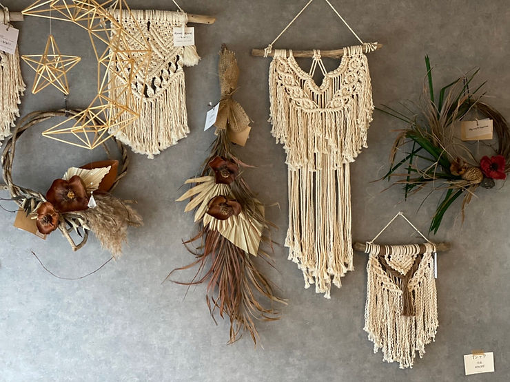 お店オリジナルの壁飾りタイプのマクラメ。