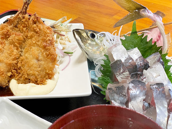 特に魚料理を得意としており、その中でも「活あじ刺身、あじフライ定食(税込 1,350円)」はおすすめです!