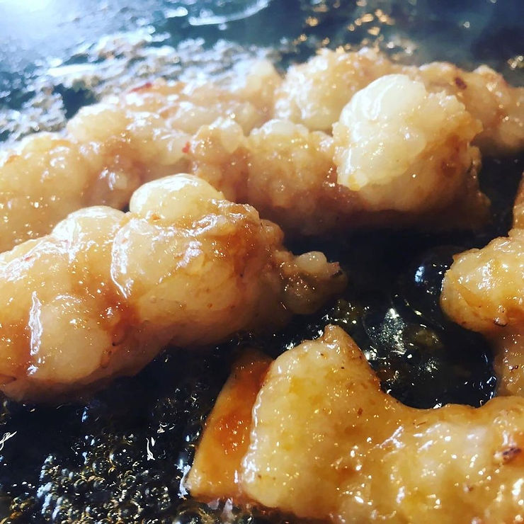 ホルモンだけではありません。他にも辛麺や一品料理などメニューは様々。その中でも一際異彩を放っていたのが、チキン南蛮ならぬエビ南蛮です。