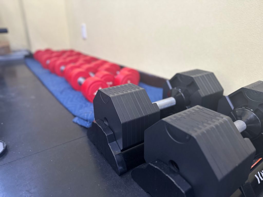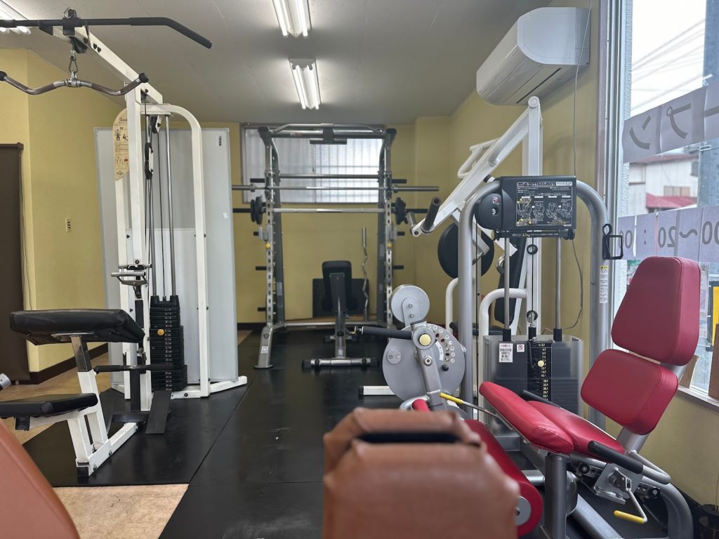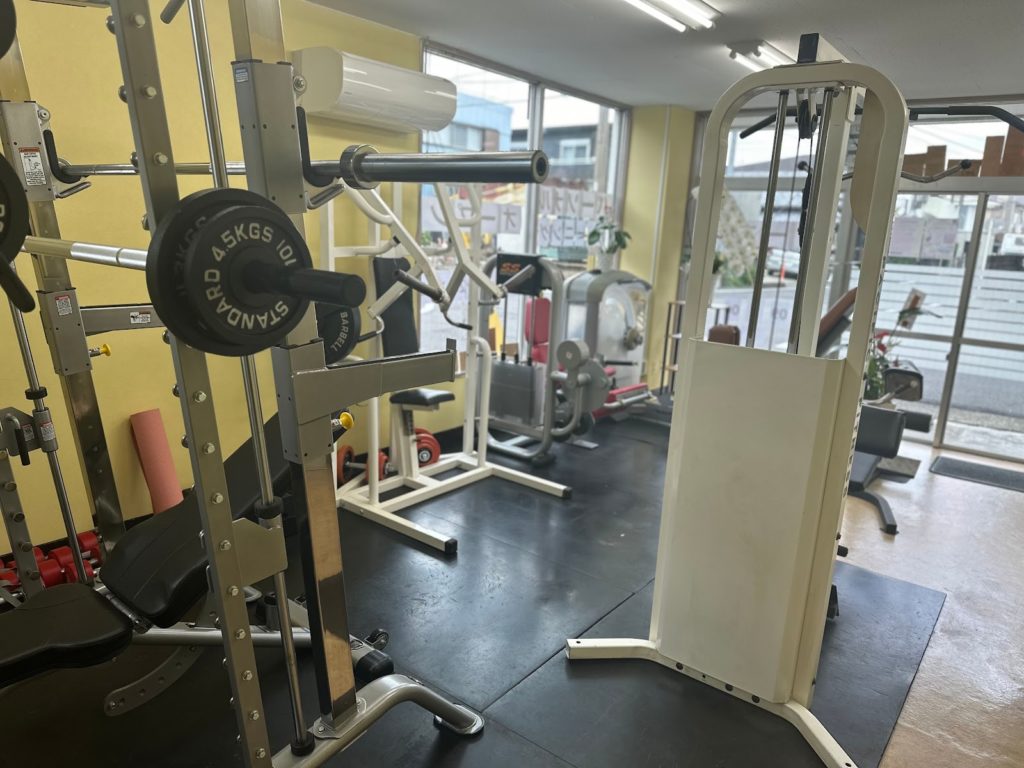 店内には様々なマシン、ダンベルが揃っており、全身のトレーニングに対応可能です。