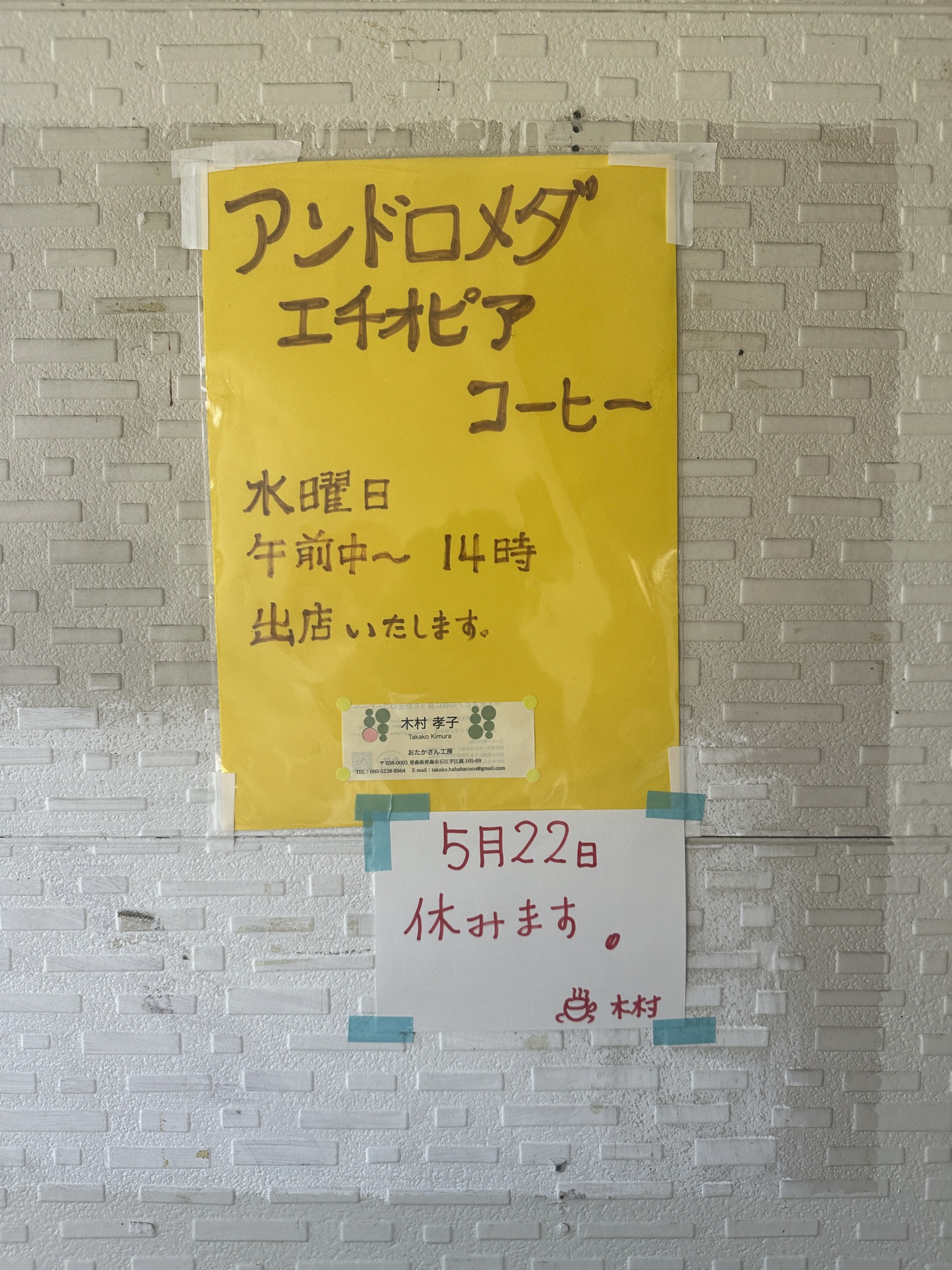 たらポッキ温泉には、毎週水曜日の10:00〜14:00、「野生のコーヒー」の販売車が来ます。