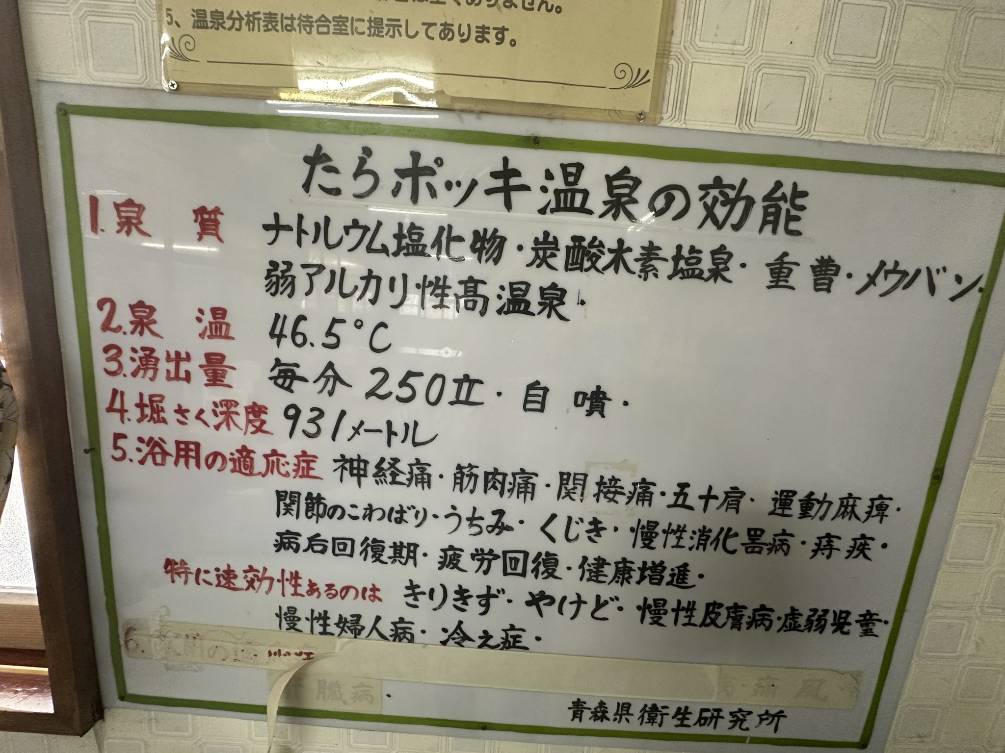 詳しい泉質や効能については以下の画像2枚を参考にしてみてください♪