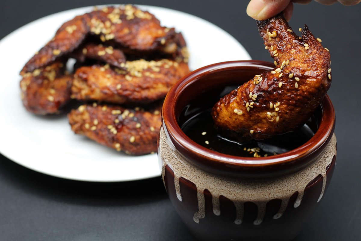 カリカリの手羽先揚げに二度付け厳禁の極旨タレを絡めていただきます。