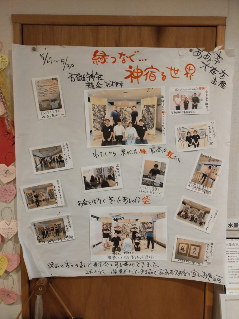 店内には、寄付していただいた龍や神様を描いた作品が展示されています。