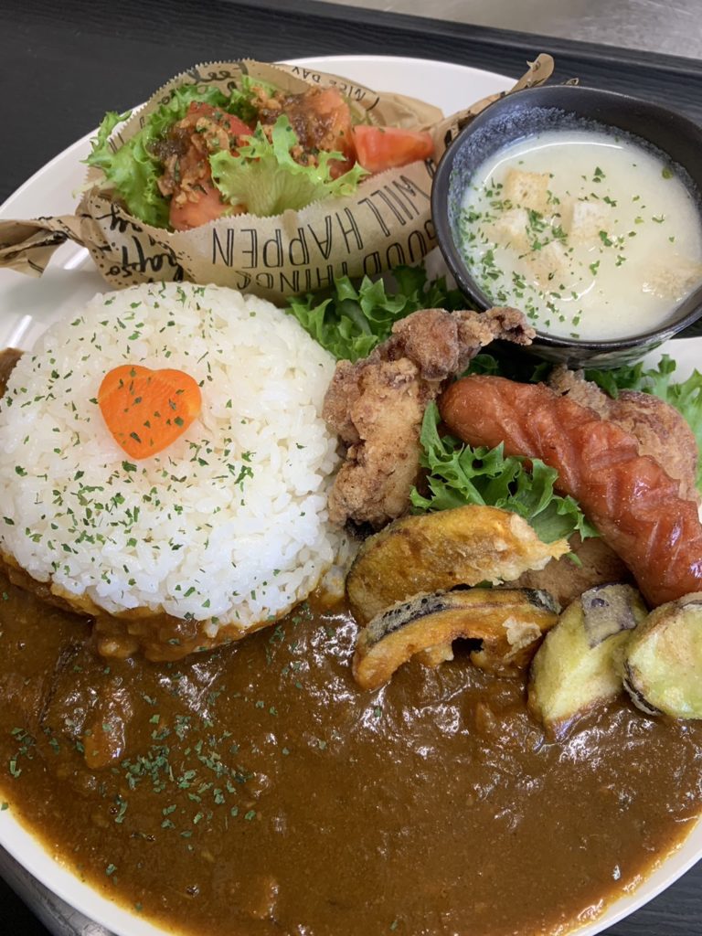カレーもサラダもスープも食べられる曜日・数量限定のランチプレートです。
