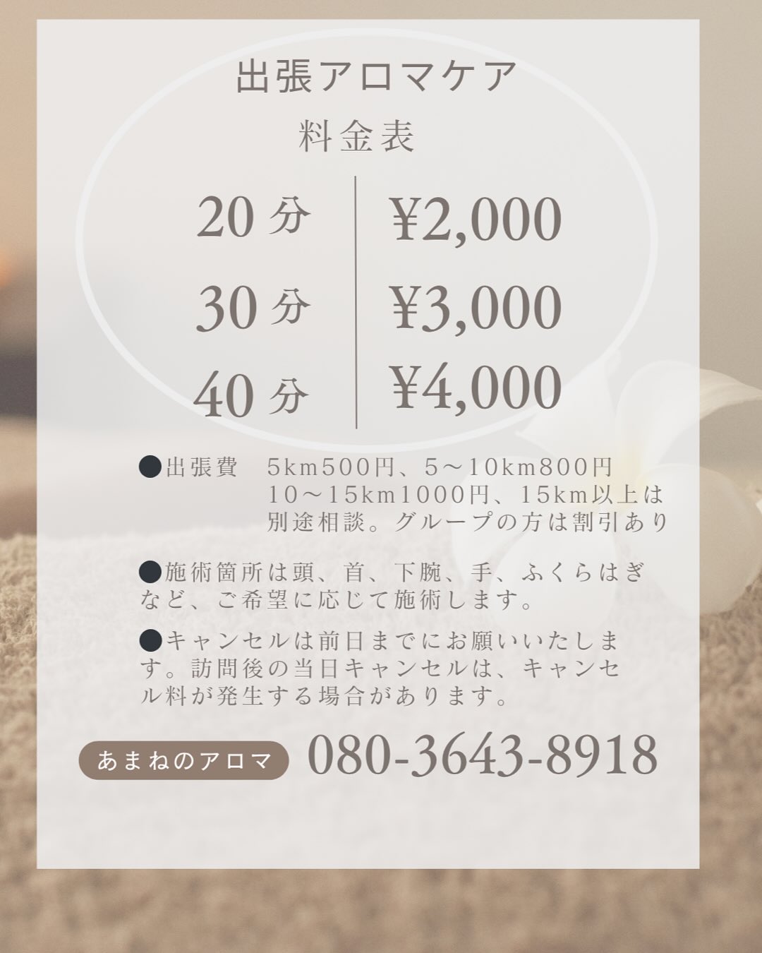※出張とご来店どちらも可能。詳細住所はご予約時にお伝えします。