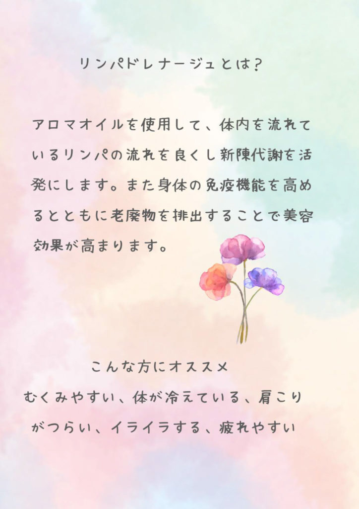 リンパの流れを良くすることで免疫力もアップし、病気になりにくい体に近づけることができるのです。