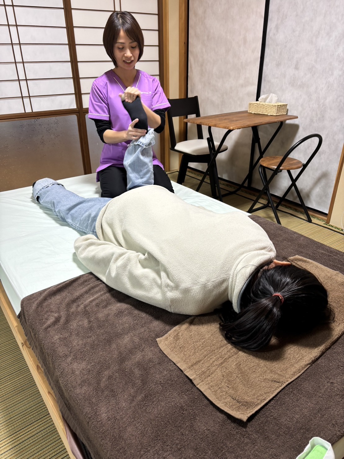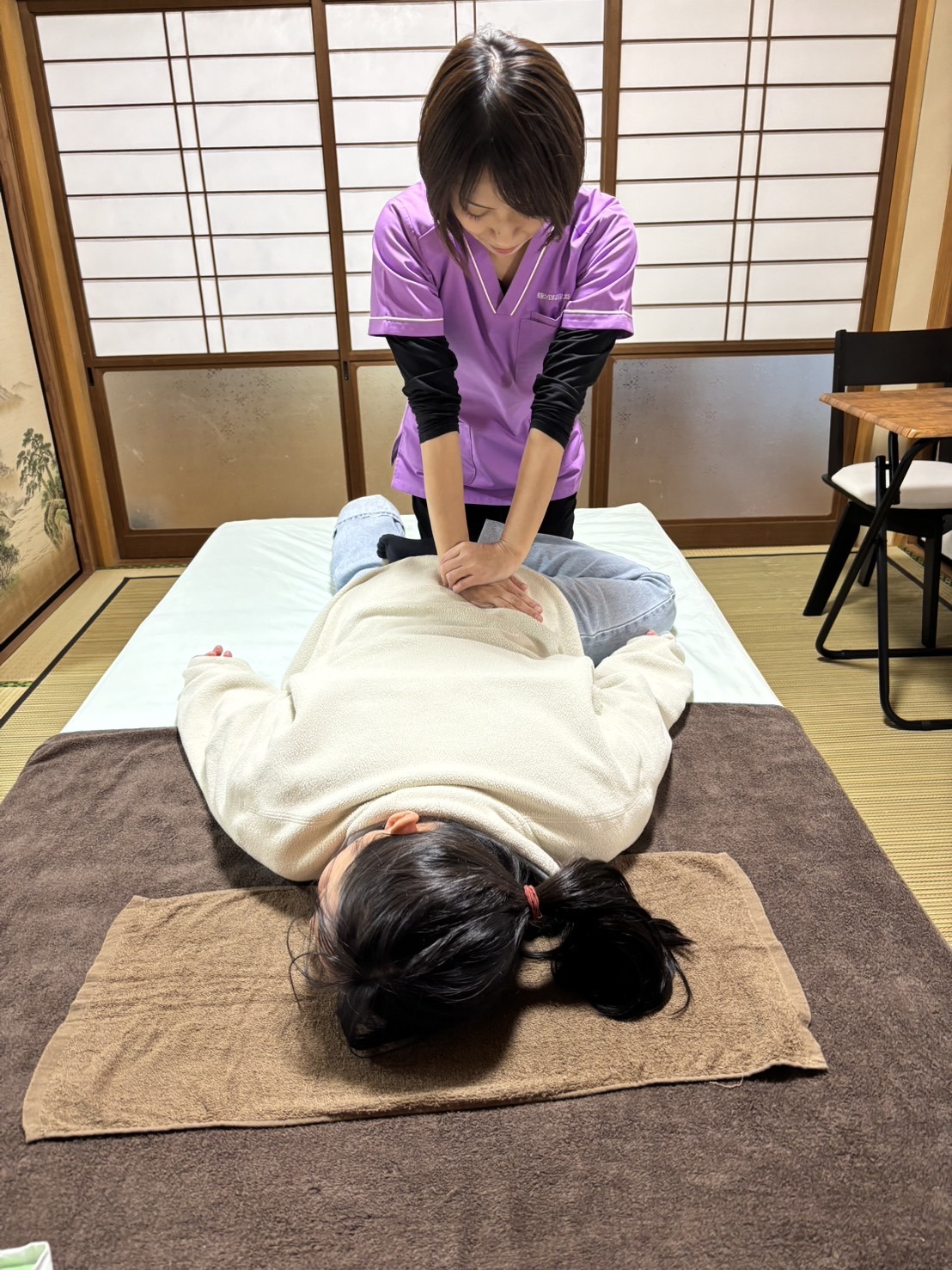 服を脱がずに手軽に受けられ、ソフトな施術で年配の方にも好評です。