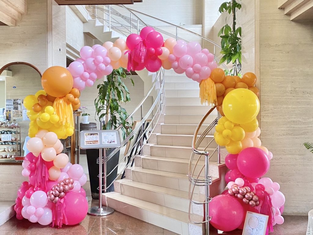 壁一面を豪華に埋め尽くすこともできますし、人の大きさほどのアーチ状に風船を組んで特別な空間を創り出すこともできます。