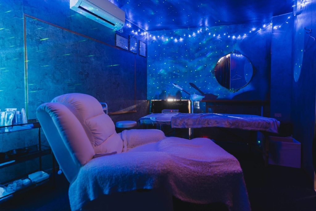 「Lily」さんの施術室は、神秘的な海の中をイメージした心安らぐ空間です。