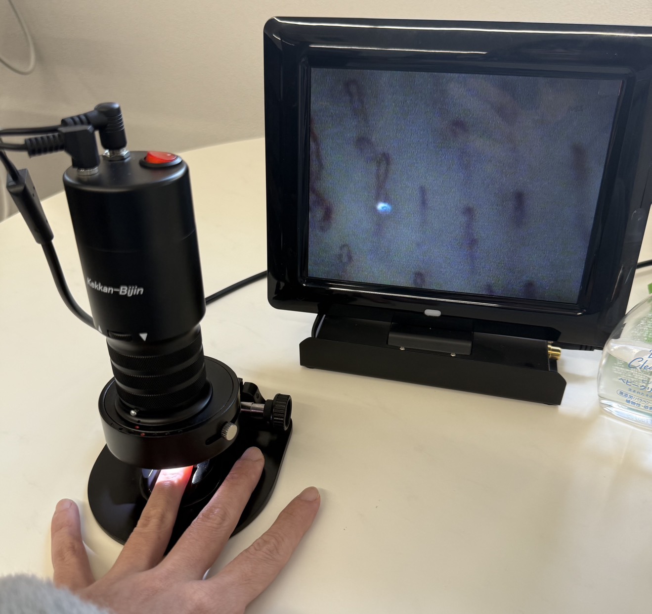 マイクロスコープで毛細血管の状態を映像で確認できる「血管美人」では、血管の形・太さ・血流スピードまで可視化。血流が遅い、ぼやけているといった変化から、食生活や疲労の蓄積を読み取ります