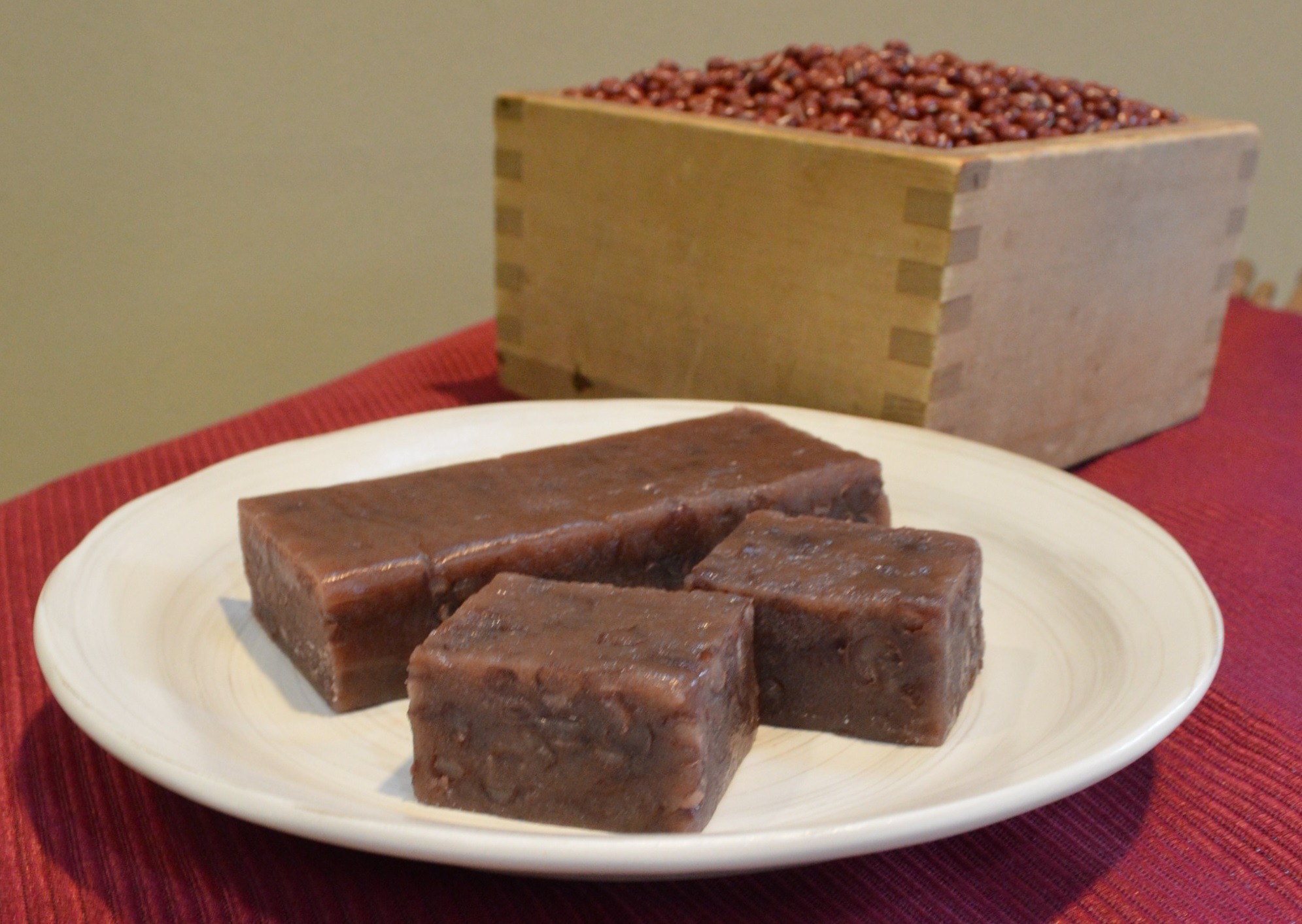 柔らかく煮た小豆に、米粉などを混ぜ、せいろで蒸し上げています。