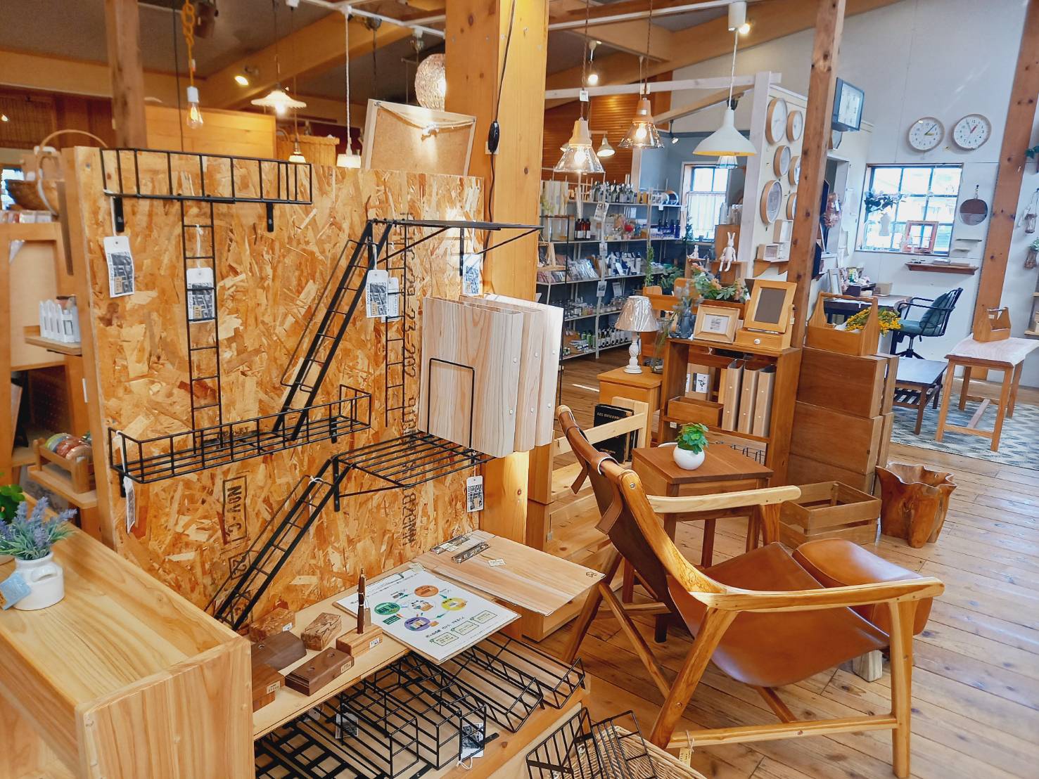 広々とした店内には、無垢材で作られた家具と素敵な雑貨がいっぱい。