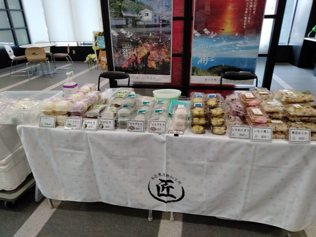 「本匠農産物加工所 匠」さんでは、まんじゅうなどの各種和菓子や味噌、梅干し、らっきょうといった加工品を販売。