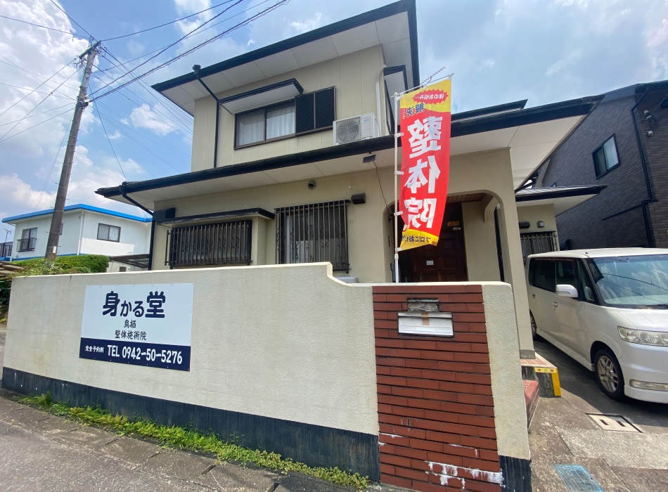 鳥栖インターから2km弱の場所、住宅街になじむようにたたずむ「身かる堂 鳥栖 整体施術院」さん。