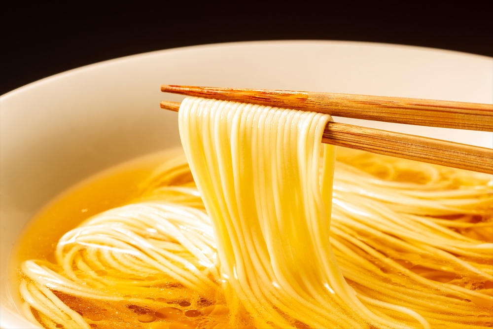 80年の歴史で培った技術と、熟練の職人たちにより、生地の状態や麺の乾燥具合などを日々細かく調整し作り上げられるラーメンは、細麺でもコシがあります。