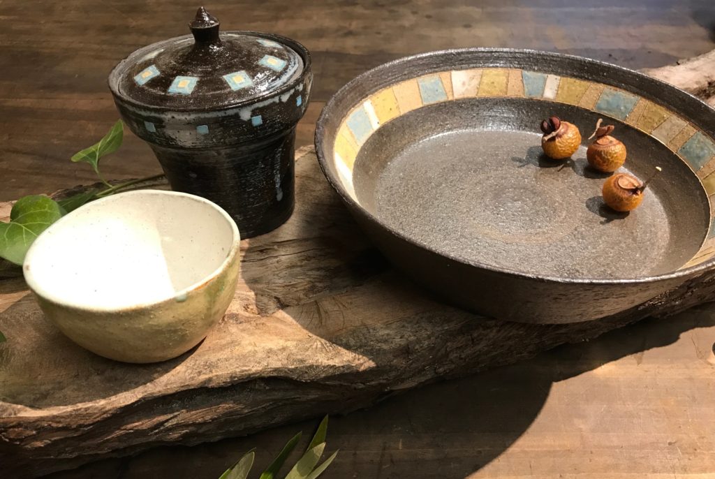 ご主人は大学で陶芸を学んだ後、山口県萩市で、現代陶芸作家の助手として活動。オブジェを主に制作していましたが、奥様から「器も焼いてほしい」との要望があり、結婚後は器も焼くようになりました。