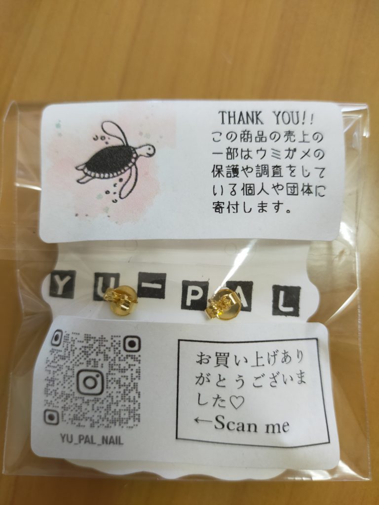 ちなみに、アクセサリーの売上金は一部をウミガメの保護や調査をしている団体に寄付されています。