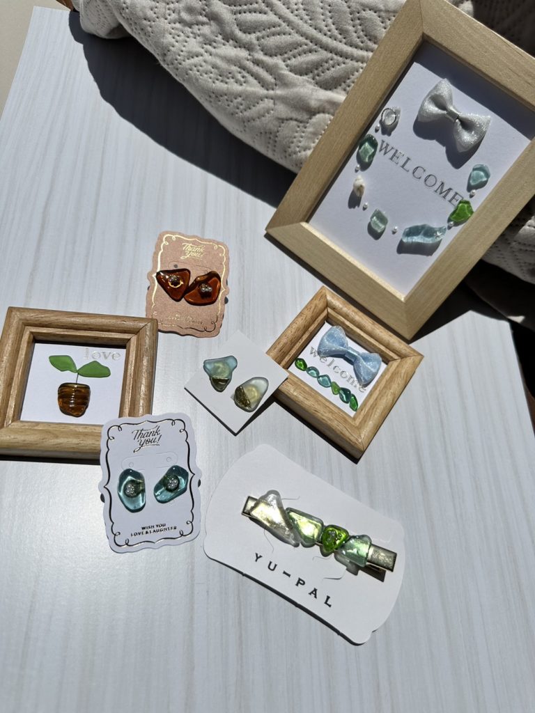 そもそもオーナーさんがシーグラスアクセサリー作りを始めたのは、海辺のゴミ拾いがきっかけなんだとか。アクセサリーはもちろんですが、その始めた理由も合わせてすごく素敵ですね。