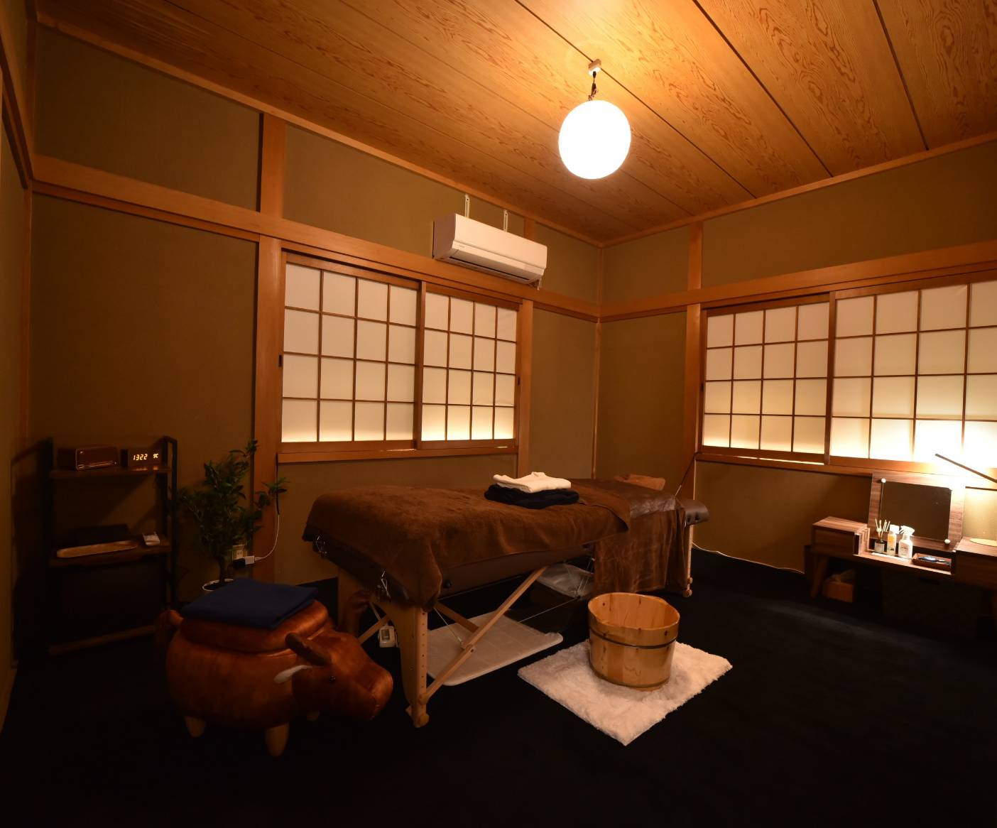 扉を開けた瞬間、ふわりと漂うアロマの香りと、和のぬくもりを感じる空間に思わず深呼吸したくなります。